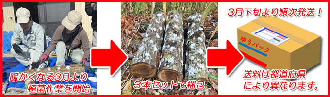 | ※原木に植菌(接種)後、3月下旬より順次発送します。 |